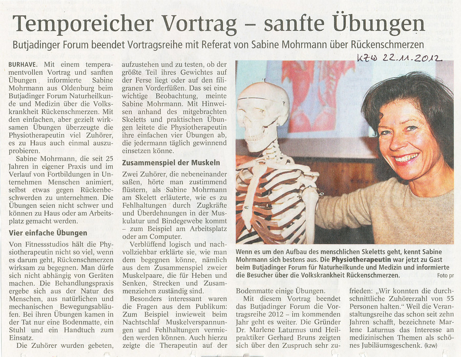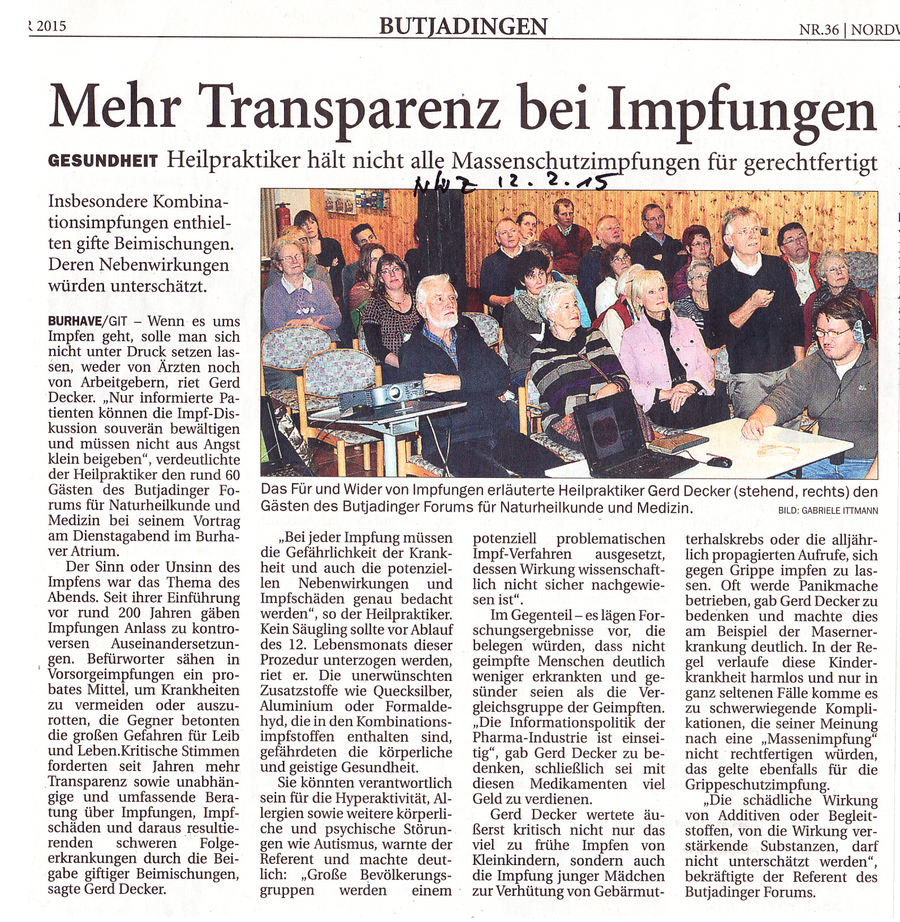 Die Kreiszeitung Wesermarsch und die Nordwestzeitung berichteten regelmäßig über die Vorträge. Dies was damals eine große Hilfe für das Forum, weil auf diese Weise viele Referenten gewonnen werden konnten. Viele Referenten sagten uns, dass es in ihren Orten und Kreisen keine derartige Berichterstattung gäbe. Das ermöglichte wiederum dem Forum, Referenten fürs Forum "kostengünstig" zu gewinnen, weil immer sehr gut und ausführlich berichtet worden ist.