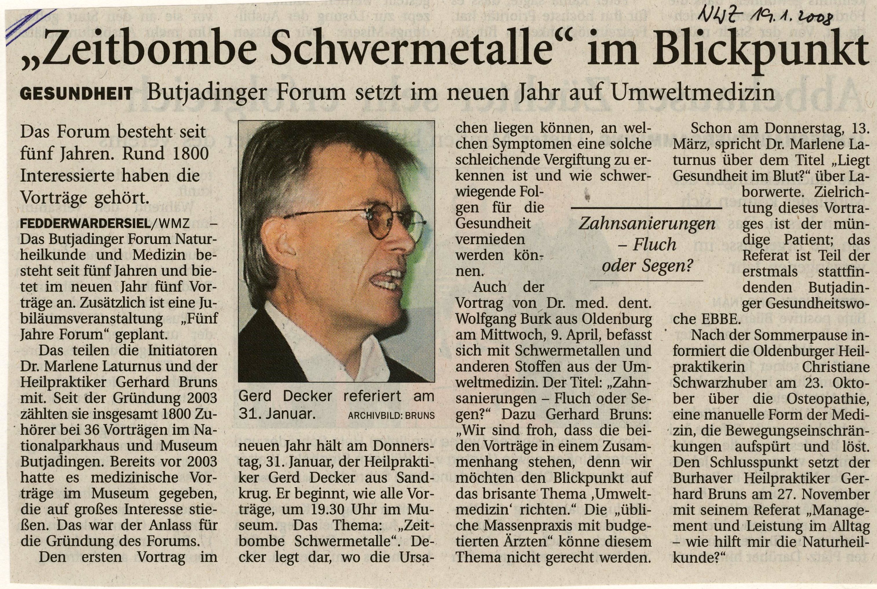 Nachfolgend einige Presseberichtige über die Vortragstätigkeit des Forum seit 2003