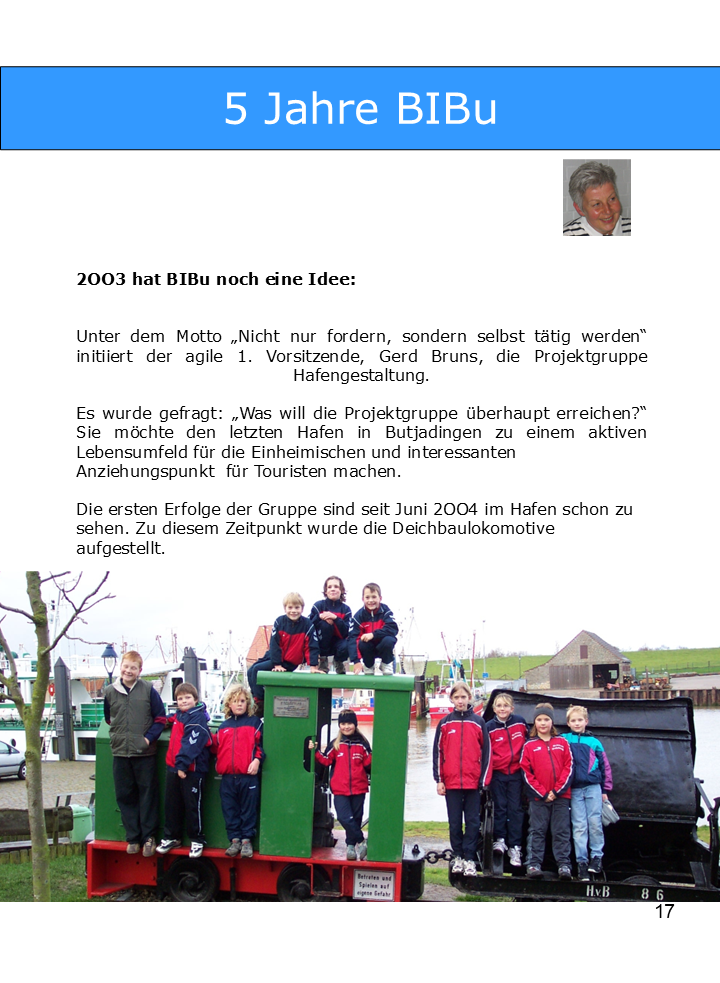 Die Bürgerinitiative Butjadingen e.V. (BIBu) hat sich in den Jahren 2001- 2008 für den Erhalt des letzten noch existierenden Fischerhafens zwischen Jade und Weser eingesetzt.