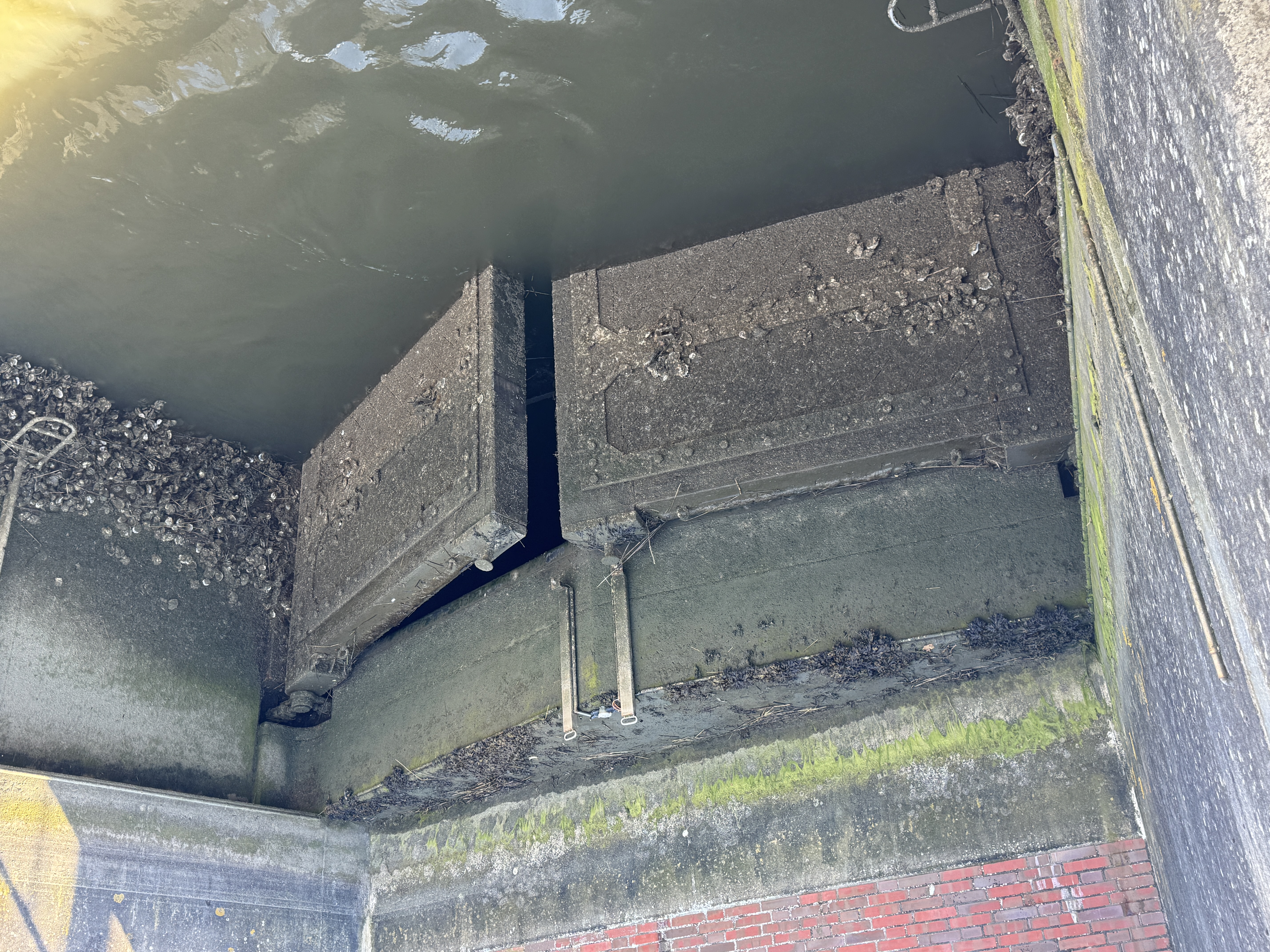 So sieht das Deichtor im Hafen Fedderwardersiel aus