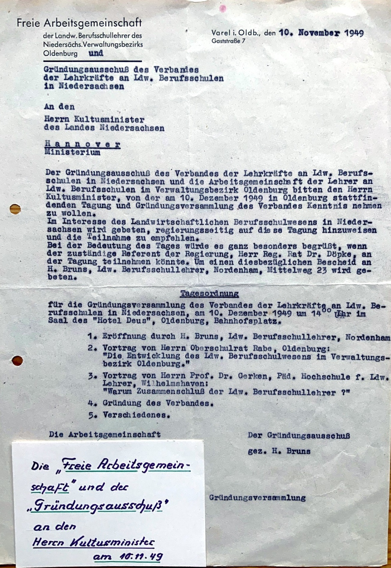 Zu erwähnen ist noch, dass mein Bruder, Dr. Hinderk Bruns, Landwirtschaft studierte und ebenfalls als Landwirtschaftlicher Lehrer an dieser Berufsschule tätig war.